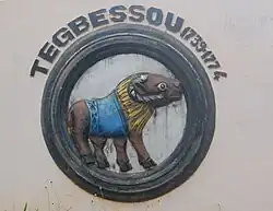![]() The symbol of Tegbessou of the buffalo in a tunic at Place goho in Abomey | |