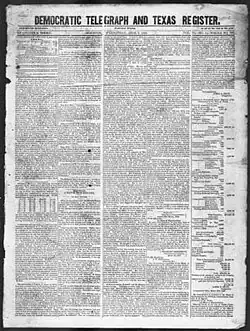 ![]() Inaugural edition of the Telegraph and Texas Register, published October 10, 1835 | |