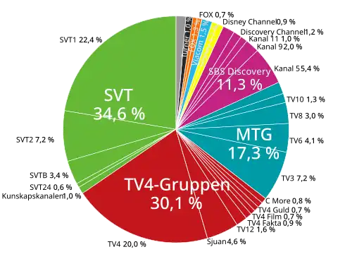 - Sveriges Television, which owns SVT1, SVT2, SVT24, SVT Barn and Kunskapskanalen