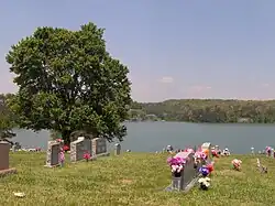The relocated Morganton Cemetery; the cove in the background is the former site of Morganton