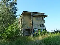 Much of the trackwork of the station and the mainline tracks near the station were dismantled as war reparations to the Soviet Union or were used to substitute for other dismantled tracks.[10] From 1950, passengers on trains to Berlin stopped in Teltow station, for which a low-quality track was rebuilt. On 7 July 1951, the DC operations of the Berlin S-Bahn were extended from Lichterfelde Süd to Teltow.[11] In this context, the separate suburban tracks from Teltow went to Ludwigsfelde were taken out of service. On 18 May 1952, long-distance transport towards West Berlin was abandoned and the tracks were dismantled. Teltow station was only accessible—except for the S-Bahn tracks—in both directions via the former construction railway which had been provided during the war with a temporary platform. In addition, since 1951, the suburban trains that had previously run to Ludwigsfelde ended in Teltow. Until the mid-1950s, occasional freight traffic operated towards West Berlin. By 1960, it was clearly established that no more freight traffic would run to West Berlin via Teltow.[12]