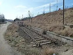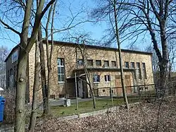 Further work was carried out on the Anhalt Railway. Here the local and long-distance tracks were separated in conjunction with the transfer of the tracks from ground level on to an embankment. As early as 1919 there were plans for the building of earthworks to raise the Anhalt Railway between Lichterfelde and Großbeeren. This work, however, was delayed for nearly 20 years until it was resumed in 1938.[9] In 1943, the separate suburban tracks from Berlin-Lichterfelde Ost to Ludwigsfelde were put into operation, but electric S-Bahn operations from central Berlin ended at Lichterfelde Süd station. Teltow was subsequently served only by suburban trains as the through passenger trains on the Anhalt Railway had resumed stopping only in Ludwigsfelde.