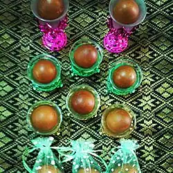 | Main ingredients | Eggs boiled in salt, soy sauce, shallot skins, and teak leaf |