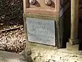 Four corner columns support a stepped roof which is surmounted by a miniature mausoleum containing an urn with wreath and flame in the form of a lamp of remembrance. The corner finials are in the form of classical urns and festoons.[2]