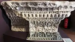 Access to the cella was afforded by circulation through the flanking arches, up narrow stairs on either side, to a landing in front of the temple, from which several more steps extending the width of the facade conducted to the cella level.[2]