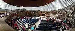 Temppeliaukio Church (Finnish: Temppeliaukion kirkko, Swedish: Tempelplatsens kyrka) is a Lutheran church in the Töölö neighbourhood of Helsinki, Finland. The church was designed by architects and brothers Timo and Tuomo Suomalainen and opened in 1969. Built directly into solid rock, it is also known as the Church of the Rock and Rock Church.[1][2]
