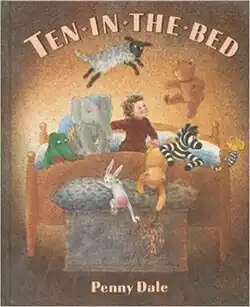 Ten in the Bed is a picture book for young children, written and illustrated by Penny Dale and published in 1988 by Walker Books.[1] It is an adaptation of the well-known counting nursery rhyme of the same name. The familiar refrain "roll over!" is intact, but it features one central child character and their nine soft toys, instead of the ten children implied in the original.
