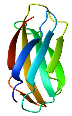 - ^ PDB: 1TEN; Leahy DJ, Hendrickson WA, Aukhil I, Erickson HP (November 1992). "Structure of a fibronectin type III domain from tenascin phased by MAD analysis of the selenomethionyl protein". Science. 258 (5084): 987–91. doi:10.1126/science.1279805. PMID 1279805.