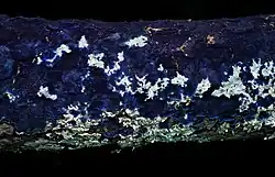 This species, which for a member of the corticioid fungi is relatively easy to identify, was first described in 1779 by Jean-Baptiste Lamarck, who is best known for proposing an early theory of evolution.[2] Lamarck used the name Byssus caerulea, and various other designations were subsequently employed, until in 1828 Fries classified it as Thelephora violascens variety coerulea.[3] According to rule 13.1.d. of the International Code of Botanical Nomenclature, valid publication of fungal names is treated as beginning with Fries's publication of "Systema Mycologicum" in 1821 and following years. This means that the correct species name is coerulea, not caerulea. Both names are found frequently in the literature. Lamarck's name Byssus is now applied to a plant genus - a fundamentally different organism.[4][5]