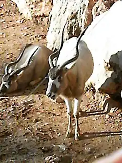 The reserve habitat is isolated, conditions which have helped create the rich congregation of desert fauna.[8] Many IUCN Red Listed endangered species such as addax, dama and Dorcas gazelles, Saharan cheetah, Barbary sheep and striped hyena survive in large numbers. Bustards, of both the Nubian and Sudan species, and also tortoise (desert-adopted spur type) are also found in large numbers;[8] vultures, small carnivorans, including canids (such as fennec, pale fox, Rüppell's fox and golden wolf) and small cat species (Saharan sand cat and African wild cat), are also reported in the reserve.[3][9]