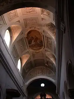 Icon Saint Caesarius deacon and martyr, patron of Terracinathe 18th-century frescoes of the presbytery and choir, depicting episodes from the election of Pope Urban II.