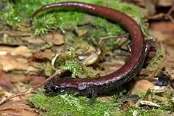 The terrestrial splayfoot salamander (Chiropterotriton terrestris), also known as the terrestrial flat-footed salamander is a species of salamander in the family Plethodontidae. It is endemic to the Sierra Madre Oriental of eastern Hidalgo state, Mexico.[3] Its natural habitats are humid pine–oak and cloud forests. It is threatened by habitat loss due to deforestation and the potential spread of amphibian pathogens due to the illegal pet trade.[1]