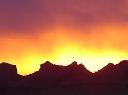 Terrett Butte, also called the Turret Buttes, are a prominent landmark on the east side of the Powder River in south-central Powder River County, Montana. They are better known today as the Turret Buttes because of their resemblance to a castle or gun turret.