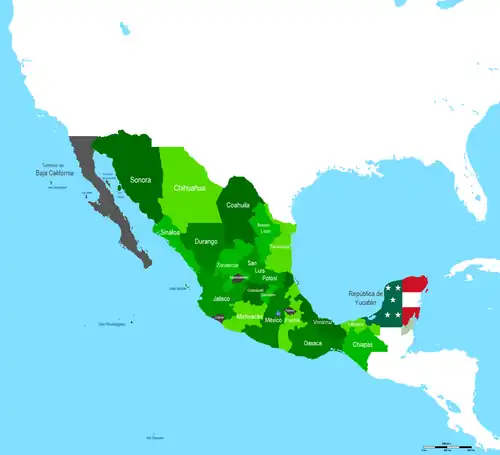- The following maps do not show the separation of Zacatecas (in 1835) and Tabasco (in 1841–1842), which never became independent republics and were never proclaimed as such.