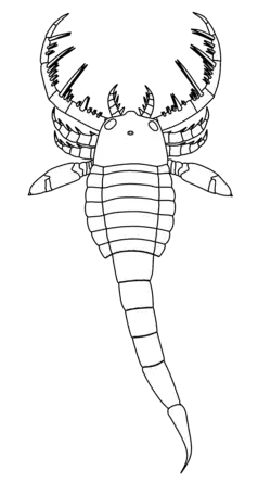 Terropterus belonged to the family Mixopteridae, a group of typically large eurypterids characterized by a superficially scorpion-like appearance and highly specialized and enlarged spiny forward-facing appendages, with the third pair of appendages of the group being particularly enlarged.[1] The largest specimens referred to T. xiushanensis would in life have measured 40 centimeters (15.7 in) in length. Incomplete larger specimens from another locality, representing either older T. xiushanensis or possibly a second species of Terropterus, are estimated to have reached 100 centimeters (3.3 ft) in length. Given that relatively few specimens are known, it is possible that the larger Terropterus specimens were also not fully grown, and that adult Terropterus were even larger.[2] At 100 centimeters in length, Terropterus was the largest mixopterid overall, longer than both Mixopterus (largest species 75 centimeters, 29.5 in) and Lanarkopterus (10 centimeters, 3.9 in, long).[3]