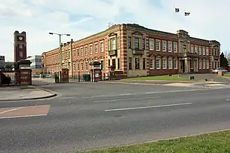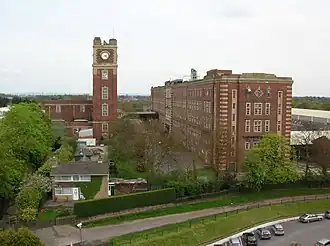 In 1924 work began on the construction of the Terry's Chocolate Works on Bishopthorpe Road, York.[63] The buildings designed by architect J. E. Wade and built by Dorman Long included a 135-foot (41 m) tall clock tower and the five-storey 510-foot (160 m) long main factory building.[5] These, along with the head office building were designated Grade II listed in March 2005[65][66][67] six months before the site closed. The site was bought by developers Grantside and renamed The Chocolate Works. In February 2010, planning permission for a £165 million redevelopment of the site as a mixed-use of residential, commercial and leisure was given.[68] Redevelopment started in 2011 with the removal of asbestos and the demolition of non-scheduled buildings in early 2012.[69] The main factory building underwent a £38 million redevelopment in which it was renamed as The Residence and the first apartments were made available in 2016.[70] The main office building was converted into The Chocolate Works Care Village which opened in 2017.[71]