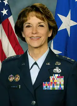 Terry Lee Gabreski (née Walter; born 1952) is a retired senior officer of the United States Air Force (USAF). She was the second woman to hold the rank of lieutenant general in the USAF.[1] She was the Vice Commander, Air Force Materiel Command,[2] Wright-Patterson Air Force Base, Ohio, which conducts research, development, test and evaluation, and provides acquisition management and logistics support necessary to keep Air Force weapon systems ready for war. She is the daughter of retired Air Force Brigadier General Alonzo Walter[1][3] and the daughter-in-law of World War II and Korean War fighter ace Colonel Gabby Gabreski.[4]