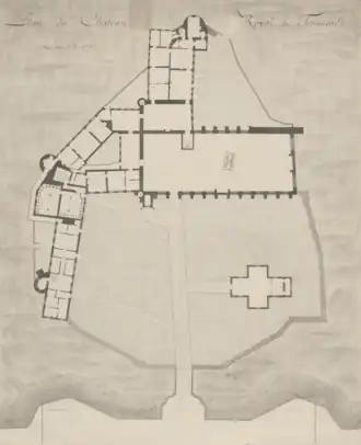 Until 1430, the residence was regularly inhabited, fortified, expanded and transformed into a prestigious ducal retreat.[1][2] 16th and 17th century engravings show a fully enclosed complex with walls and towers, connected to the village by a drawbridge.[1][2] The complex was dominated by a large Gothic hall (48 by 18 metres), constructed by Duke John II, similar to the Ridderzaal in The Hague and Westminster Hall in London.[1][2] The hall was used as a meeting room for the States of Brabant and as centre of large festivities and hunting parties.[1][2] In the last part of his life, Duke John III spent most of his time at Tervuren Castle.[1][2] He transferred part of his administration to the castle.[1]