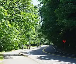 Terwilliger Boulevard is a street in Portland, Oregon, U.S. It begins at SW 6th Avenue and SW Sheridan Street south of Portland State University. It passes through the neighborhoods of Marquam Hill, Southwest Hills, and Burlingame and by Lewis and Clark College before ending at Oregon Route 43 in Lake Oswego. For portions of its route, it is a traditional parkway through Duniway and Marquam Parks. The land surrounding Terwilliger Boulevard is heavily wooded in nature.