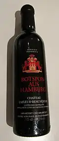 Carl Tesdorpf is primarily known for making Rotspon, a French red wine that ages as it is shipped from Bordeaux to Lübeck.[4] The Tesdorpf wine shop was known to supply wine to Germanic and Northern European royalty, as well as Napoleon.[5] In 1999, Carl Tesdorpf was acquired by Hawesko Holding. The Carl Tesdorpf wine shop is also reported to be the oldest wine shop in Germany.[6][7][8]