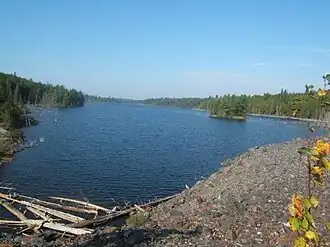 Tetapaga Lake, also known as Lake Tetapaga, is a narrow east–west trending lake in the Temagami region of Northeastern Ontario, Canada, located at the abandoned iron-bearing Sherman Mine. A gravel road crosses the central portion of the lake, splitting it into two small lakes. The eastern half of Tetapaga Lake is somewhat green in colour due to acid mine drainage water flowing into the lake. The acid mine drainage water results from water seeping through the abandoned iron ore of Sherman Mine along its eastern shore. Its western half is relatively uninfected where very little waste from Sherman Mine exists.