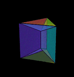 ![]() Transparent Schlegel diagram seen as one tetrahedron nested inside another, with 4 triangular prisms between pairs of triangular faces. |