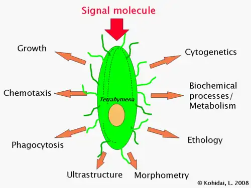 - ^ Leick V, Hellung-Larsen P (January 1992). "Chemosensory behaviour of Tetrahymena". BioEssays. 14 (1): 61–6. doi:10.1002/bies.950140113. PMID 1546982.