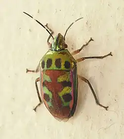 - ^ Ghate, H. V.; Jadhav, S. S. (2015). "First record of two color forms of a shield bug Tetrarthria variegata Dallas, 1851 (Pentatomoidea: Scutelleridae : Scutellerinae: Scutellerini), from Phansad, Raigad Dist., Maharashtra". Prommalia. 3: 95–99. ISSN 2320-4311.
