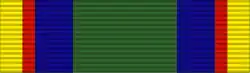 The Texas Federal Service Medal, formerly the Texas Service Medal, is a campaign/service award of the Texas Military Department that may be issued to any service member of the Texas Army National Guard or the Texas Air National Guard.[1] Subsequent awards are issued by a bronze or silver star device.[2] It is not awarded to personnel of the Texas State Guard, although, qualifying Texas state guardsmen who have previously been awarded the medal may wear it on their dress uniform.