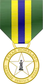 The Texas Homeland Defense Service Medal is a one-time award to any member of the Texas Military Forces who:[2]