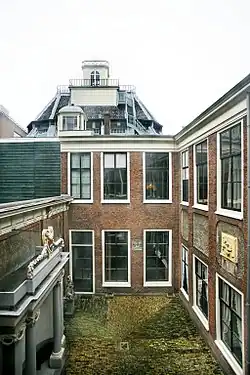 The observatory can be reached via a staircase from the Grote Herenkamer (large board room), which is located next to the Oval Room. That staircase leads the visitor to the lower roof, where a steep open air wooden staircase leads to the small room on top of the dome. For precision measurements, a new observatorium was built in the garden, that was later used as a studio by the later curator Jan van Borssum Buisman.