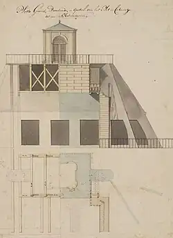 The observatory was built on the suggestion of Jacobus Barnaart, one of the five initial directors of the Teylers Stichting, which was the foundation responsible for taking care of the inheritance of Pieter Teyler van der Hulst. Barnaart was an amateur scientist who had a great interest in astronomy and wanted to build a state-of-the-art astronomical observatory on the roof of the Oval Room. This proved to be a bad idea, because the roof was made of wood, which transfers too many vibrations to make reliable and precise observations. Hence a belvedère was built instead, a square tower with two doors in each wall.[1]