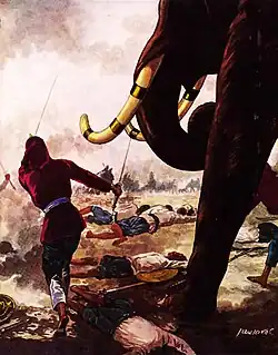![]() Battle in the Tha Din Daeng campaign, illustrated by Hem Vejakorn (c.1969) | |||||||