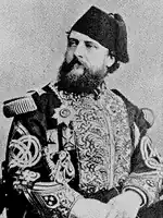 Mott remained in the United States for several years after the war. While in New York, he was a member of both the Freemasons' Holland Lodge No. 8 and Jerusalem Chapter No. 8, R.A.M.[5] In 1867, he was nominated to replace General Lawrence as U.S. Minister to Costa Rica but declined the offer. A year later, he travelled to Turkey to join the Ottoman Army[3] and then on to Cairo where he was appointed a major general or "ferik-pacha".[4][5] That same year, he was named Grand Officer of the Imperial Order of the Madjidieh by Sultan Abdulaziz. He also became a member of the "Conseal de Guerre" and saw plenty of service in the Balkans during the next few years.[1]