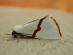 The Orange-rimmed Satin Moth (Thalaina selenaea) is a moth of the family Geometridae. The species was first discovered by Henry Doubleday in 1845. It is found throughout eastern Australia, including Tasmania. Although the common name Satin Moth is sometimes used for this species, that name is already applied to Leucoma salicis, an unrelated species native to Europe and Asia.