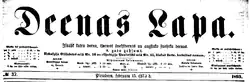 Dienas Lapa ('Daily Sheet') was a Latvian newspaper published from 1886 to 1905. It espoused progressive politics, including workers' rights and Latvian cultural autonomy.[1] The editors of the newspaper included Pēteris Stučka (1888–91, 1895–97), Jānis Pliekšāns (1891–1895) and Jānis Jansons-Brauns (1905). In 1893, Rainis attended a socialist congress in Zurich, met August Bebel, and smuggled Marxist and socialist literature back into Latvia. Upon his return, Dienas Lapa shifted from a progressive political bias to promoting Marxist and Social Democratic ideas. Dienas Lapa became a rallying point for revolutionary intellectuals in Latvia. In 1897 the newspaper was closed down by the authorities for several months. Both Rainis and Stučka were arrested as revolutionaries and served time in prison and forced exile in Russia. It soon re-emerged, but adopted bourgeois orientation.