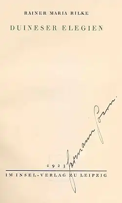 3. ^ Rilke 1923, "First Elegy", line 1.