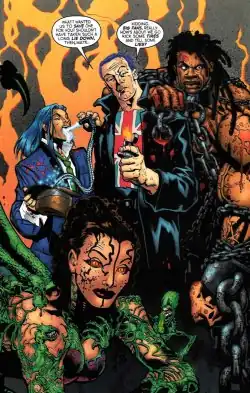 ![]() The original line up from Action Comics #775. Clockwise: Menagerie I (foreground), Hat, Manchester Black, and Coldcast. | |