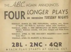 - ^ "Radio Plays for Next Week A.B.C.", ABC Weekly, 19 (9), Sydney: Australian Broadcasting Commission, 2 March 1957, nla.obj-1553702332, retrieved 25 October 2023 – via Trove