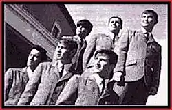Formed in 1966, the band was originally known as the Playmates and included Victor Roybal (organ), Eddie Roybal (drums), Mike Layden (lead guitar), Joe Abeyta (rhythm guitar, backing vocals) and Ernie Gonzales (bass guitar). The group soon recruited Danny Houlihan (lead vocals) and replaced Abeyta with Eddie James, who already had experience performing with the Champs.[1] With the addition of two members, the Playmates decided a name change was in order. It was initially suggested by Houlihan to rechristen the group the Fe-Fi-Fo-Fum, the phrase said by the giant in the fairy tale "Jack and the Beanstalk". However, feelings toward the proposal were split and, as a compromise, they agreed on the Fe-Fi-Four Plus 2 (the total number of band members).[2]