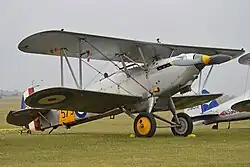 Flown from the aircraft carrier HMS Glorious by No. 408 (Fleet Fighter) Flight RAF until being written off in 1938. It was discovered in a scrapyard in the 1970s and restored to airworthiness in the 1990s, taking its first post-restoration flight in 2000. It joined the Fighter Collection in 2004. It is currently painted in the markings it carried when serving operationally in the 1930s.[19]