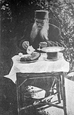 "The First Step" (Russian: Первая ступень) also known as "The Morals of Diet",[1] is an 1891 essay by Russian author Leo Tolstoy that advocates for vegetarianism. Originally written as a preface to the Russian translation of Howard Williams' 1883 book The Ethics of Diet, the essay also touches on themes of anarchism and pacifism. In the piece, Tolstoy argues that adopting a vegetarian diet is a necessary first step toward moral development, drawing on religious, ethical, and psychological reasoning to support his claims.[2][3]