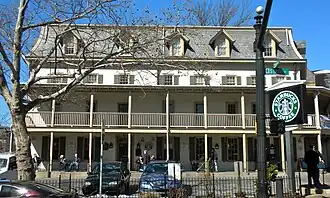 The Fountain House was one of seven taverns in pre-revolutionary Doylestown. It was constructed by William Doyle, the founder of Doylestown. The first part of the building was constructed in 1758. Owned by a Tory during the American Revolutionary War, it was seized by government authorities and sold at auction. Throughout the 19th century, The Fountain House hosted, in addition to a tavern, the first Doylestown post office, and a stagecoach line connecting Philadelphia and Easton. The Fountain House was entered into the National Register of Historic Places in 1972.[2]