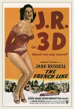 The French Line is a 1953 American musical film starring Jane Russell made by RKO Radio Pictures, directed by Lloyd Bacon and produced by Edmund Grainger, with Howard Hughes as executive producer. The screenplay was by Mary Loos and Richard Sale, based on a story by Matty Kemp and Isabel Dawn. It was filmed in three strip technicolor and dual-strip polarized 3D during what many consider 3-D film's "golden era" of 1952–1954.