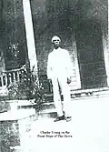 On March 6, 1885, Charles and Daphne Young purchased the Grove; they were an African-American couple that had been born into slavery as children. Charlie was born on the Sam Smith plantation near Clarksville, Texas. After the slaves were freed, Charlie moved to Jefferson with his mother, where he apprenticed as a barber.[18] In 1908, the Young family experienced a tragedy when the son, James, committed suicide at the house – he hanged himself on the back porch. His body is not listed on the family marker in Cedar Grove cemetery in Jefferson with the rest of the family, so no one knows where James was buried. Charlie and Daphne lived at The Grove until their respective deaths in 1938 and 1955. When Charlie Young died, he left The Grove to his oldest daughter, Louise.[10]