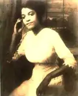 A ghostly woman has also been reported many times being around the Grove. She was spotted in the house by Hopkins right before he was opening up the restaurant. The woman has also been reported by a neighbor and her sister, who saw a "glowing white figure" on the porch.[14] This woman has been said to be the original owner, Minerva Fox Stilley. She has often been seen walking beside the house, and then stepping up through a wall of the house. On the inside, she emerges from the wall and then walks across the width of the house. This strange path makes more sense when one considers that the wall that she steps up through was once the back porch to the house before the 1870 addition was made. Instead of stepping up through a wall, she instead is probably stepping up onto the back porch, coming through a door that was at the back of the house, and walking across to what would have been the children's bedroom.[23]