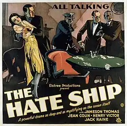 The Hate Ship is an all-talking sound 1929 British mystery film directed by Norman Walker and starring Jameson Thomas, Jean Colin and Jack Raine. It was made at Elstree Studios by British International Pictures.[1]
