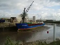 The first ship to sail up the realigned channel and into the dock was the Myrtle, a 1,700-ton ship carrying cotton seed, which berthed in the dock on 20 December 1884. Development of the port had taken around 90 years, but resulted in a channel which scoured itself, needing little dredging. Land drainage in the area was also improved, as water levels on the downstream side of the Grand Sluice were reduced by around 4 feet (1.2 m).[5]