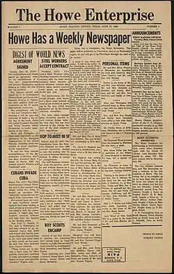 3. ^ "About The Howe Enterprise. (Howe, Tex.) 1963-current". Chronicling America. Retrieved July 21, 2021.