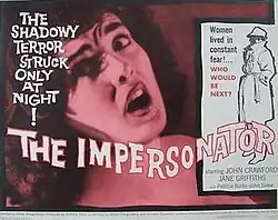 The Impersonator is a 1961 low-budget black and white British second feature[2] thriller film directed by Alfred Shaughnessy starring John Crawford, Jane Griffiths, Patricia Burke and John Salew.[3] It was written by Kenneth Cavander and Shaughnessy. An American angle was incorporated to give transatlantic box office appeal.[4]